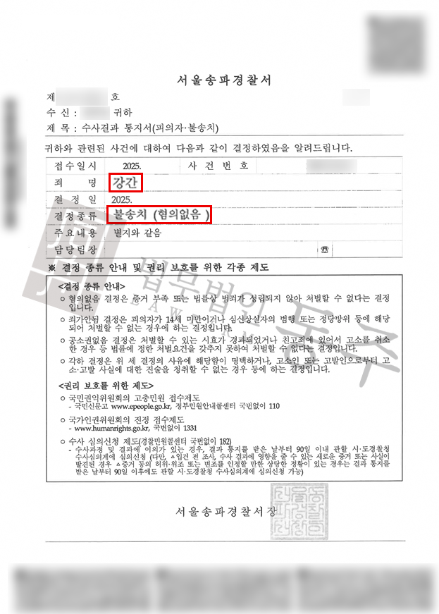 위와 같은 사유를 들며 강간죄가 성립한다 보기 어렵다는 점을 수사기관에 논리적으로 설명하였지요.