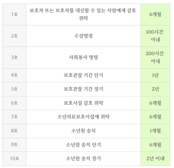 10호 : 소년원 송치 장기 - 2년 이내
