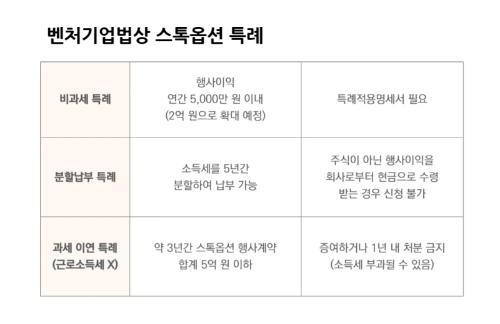 벤처기업법상 스톡옵션은 행사 이익이 5,000만 원보다 작으면 세금 걱정하지 않아도 돼요!