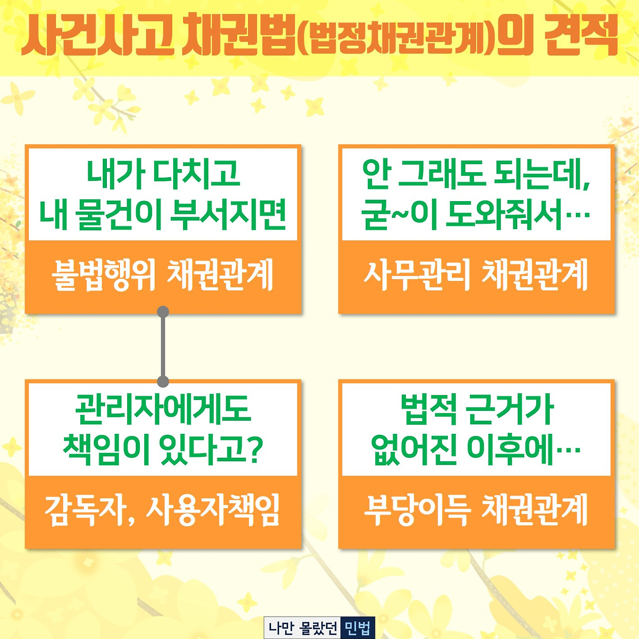 사건사고 채권법(법정채권관계)에서는 "계약"이 아니라 "사건사고"로 채권과 채무가 갑자기 발생하는(탄생하는) 사례를 살펴봅니다.