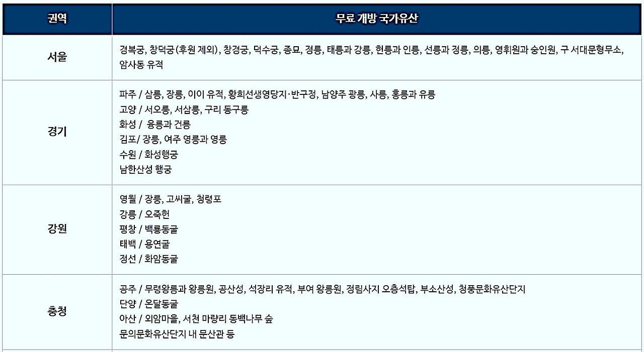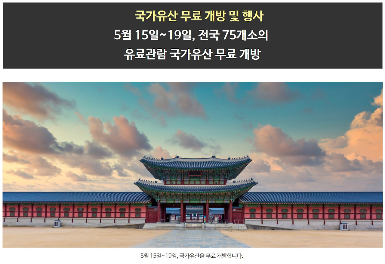 3. 5월 19일(일)까지 전국 75개소의 유료관람 국가유산이 모두 무료 개방됩니다.