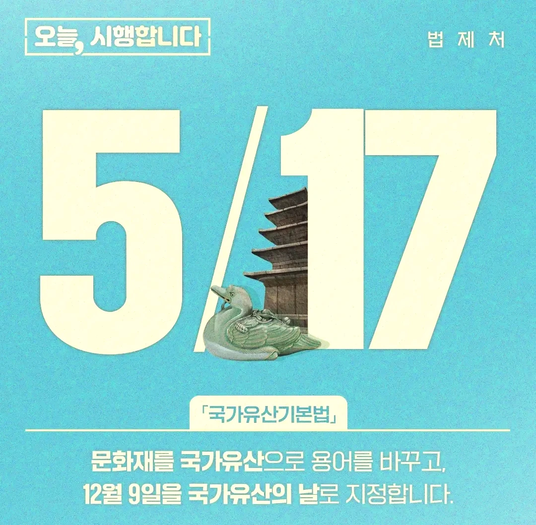 오늘 2024년 5월 17일, "국가유산기본법"이 시행됩니다.