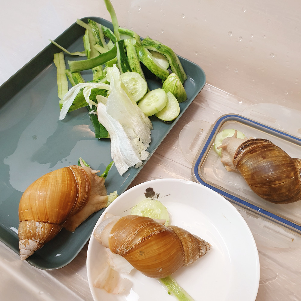 백와달팽이가 오이껍질을 야무지게 먹는 모습도 볼 수 있습니다.
