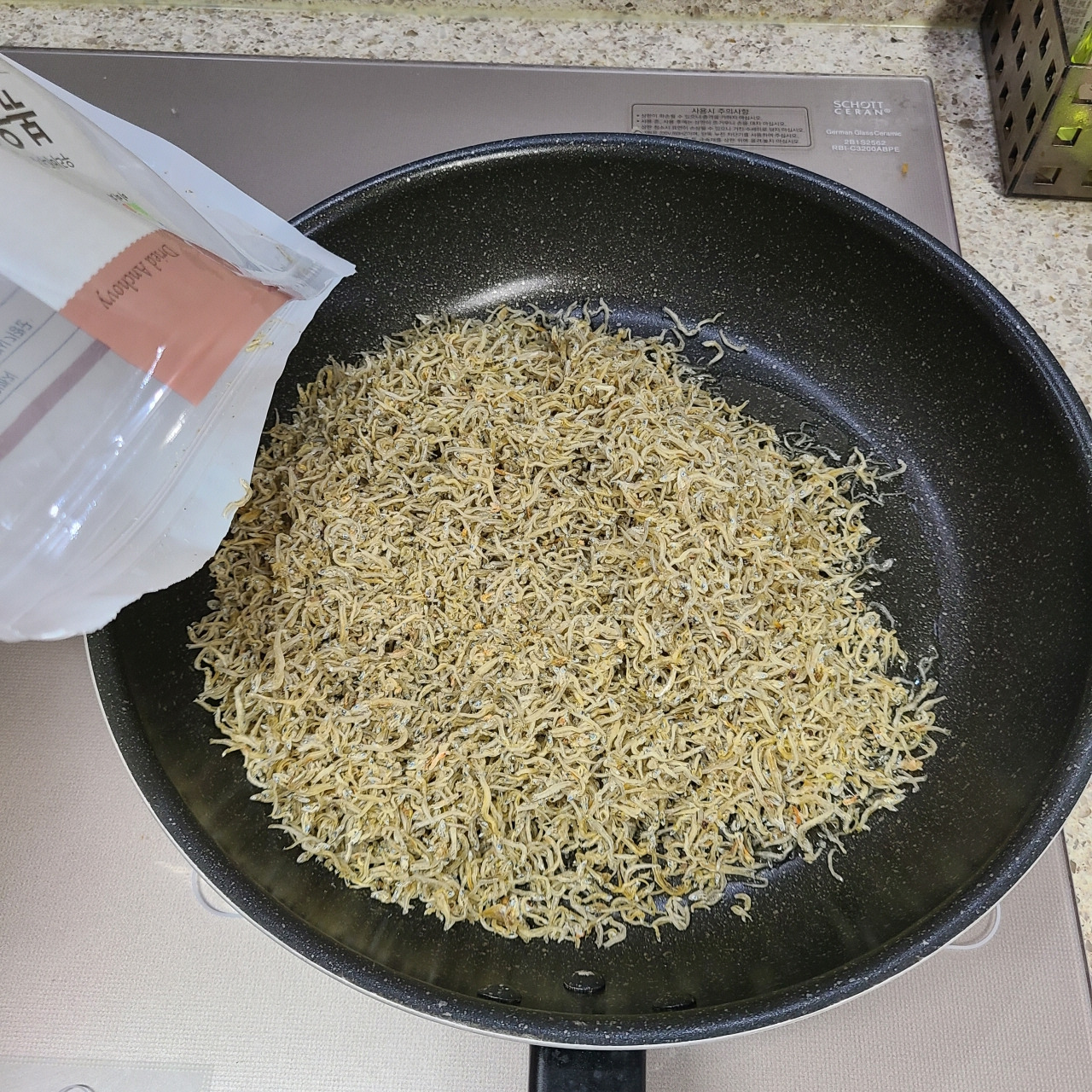 10분 정도 중불에 멸치를 볶으면 약간 노릇노릇해지는 것을 볼 수 있습니다.