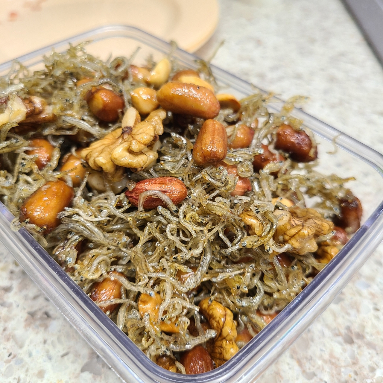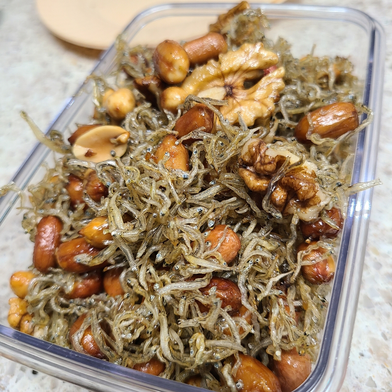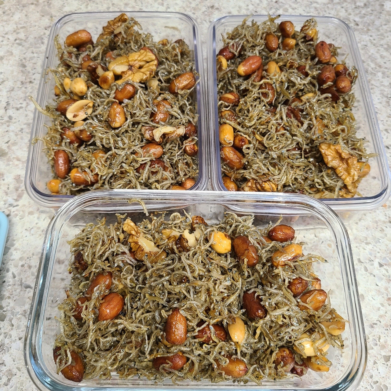 세멸치 200g으로 멸치볶음을 하면 함께 들어가는 땅콩과 호두 덕분에 꽤 많은 양이 만들어집니다.