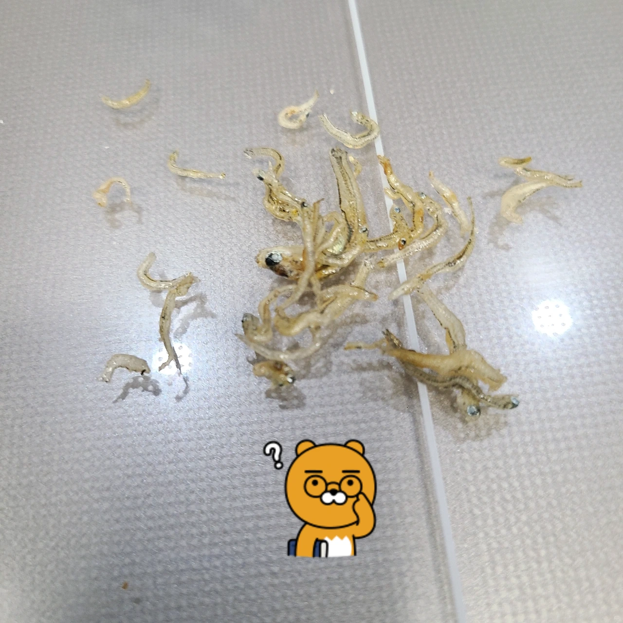 멸치를 열심히 볶다 보면, 프라이팬에서 탈출하는 멸치들이 발생합니다. 잘 모아서 제 입에 넣어줍니다.