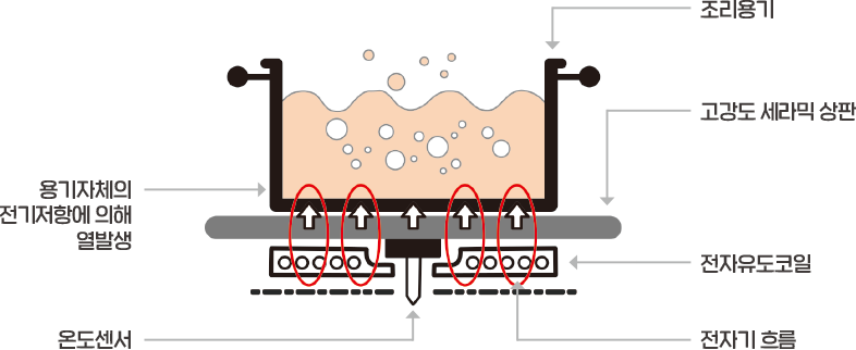 그렇지만 인덕션의 열기는 냄비나 프라이팬 바닥에만 존재합니다.