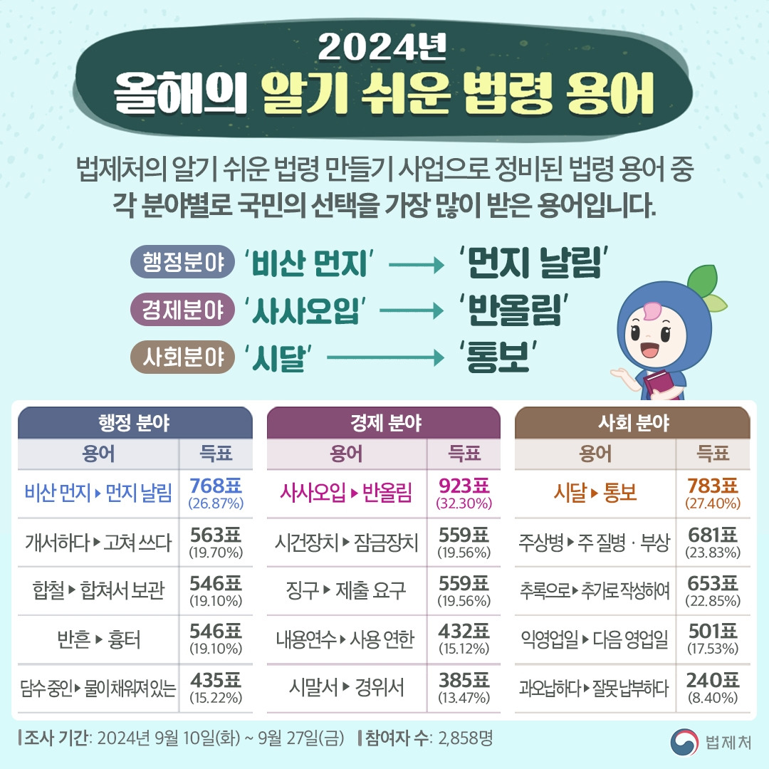 법제처는 578돌 한글날을 맞아 2024년 ‘올해의 알기 쉬운 법령 용어’로
