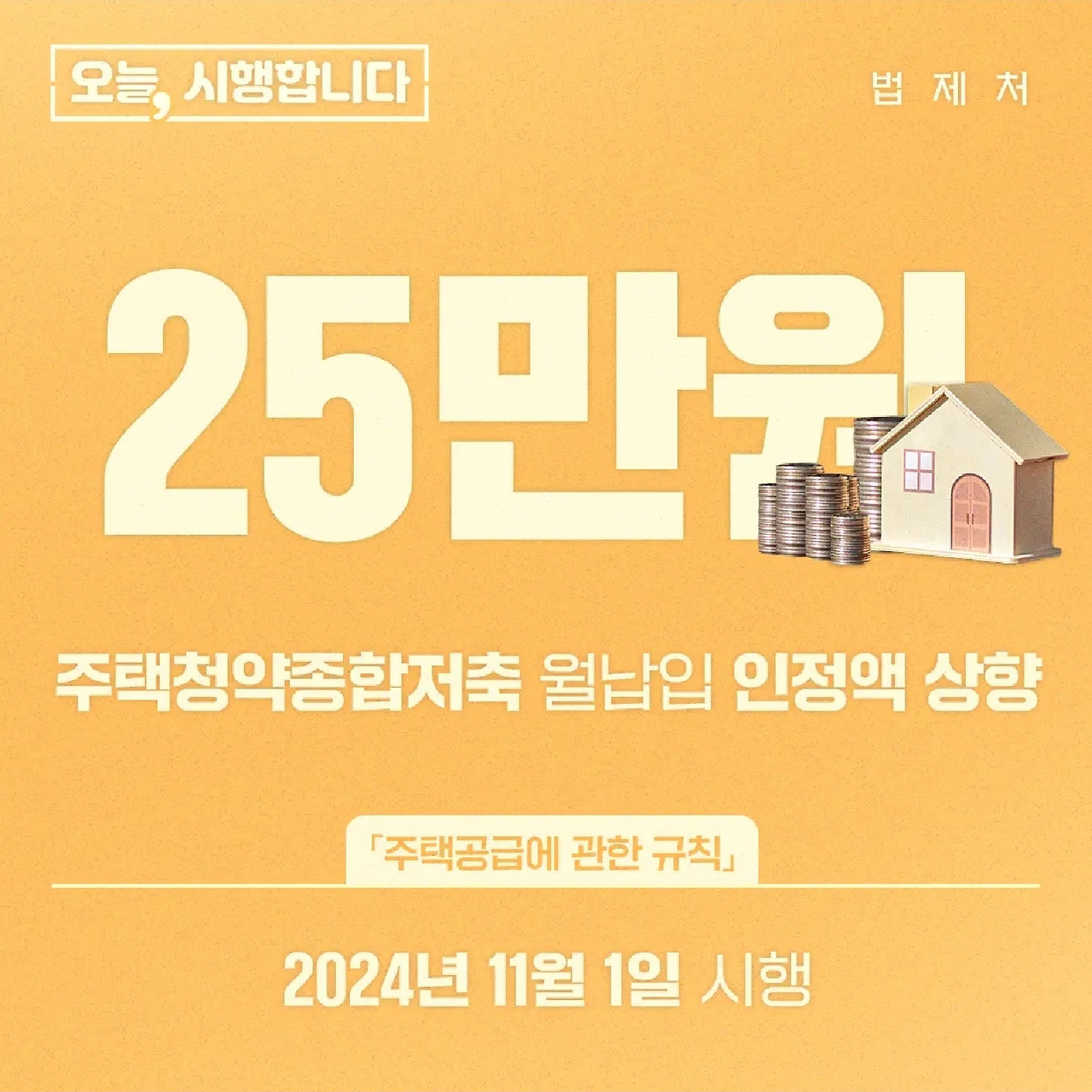 41년 만에 주택청약통장의 월납입금 최대 인정한도가 10만원에서 25만원으로 증액됩니다.
