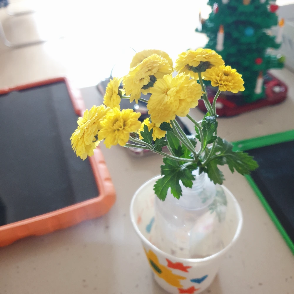 지난 11월 27일, 아들은 학교에서 국화꽃을 종이컵에 받아왔습니다.