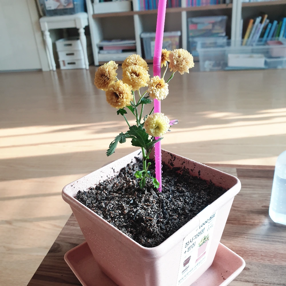 아들이 학교에서 받아온 국화꽃은 우리 집의 새로운 식구가 되었습니다.