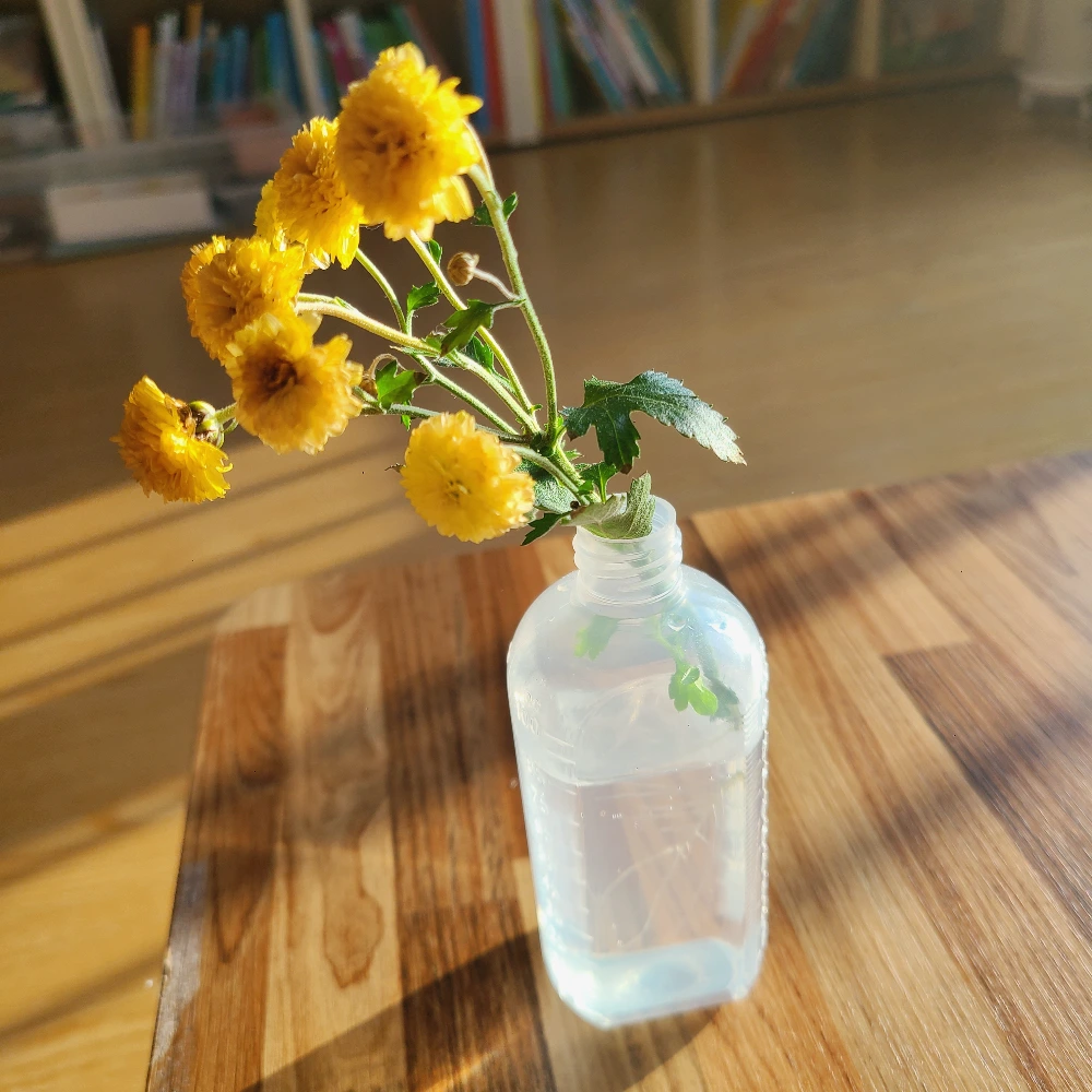 그러나 아들이 물병에 꽂아두면 오래 살 것이라고 하여, 위와 같이 물약병에 물을 받아 임시로 보관하고 있었습니다. 이후 박사과정 2학기를 마무리하느라, 국화꽃에 관심을 갖지 못했습니다.
