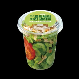 토마토, 오이, 양상추, 올리브, 치즈와 함께 닭가슴살도 함께 들어있습니다.