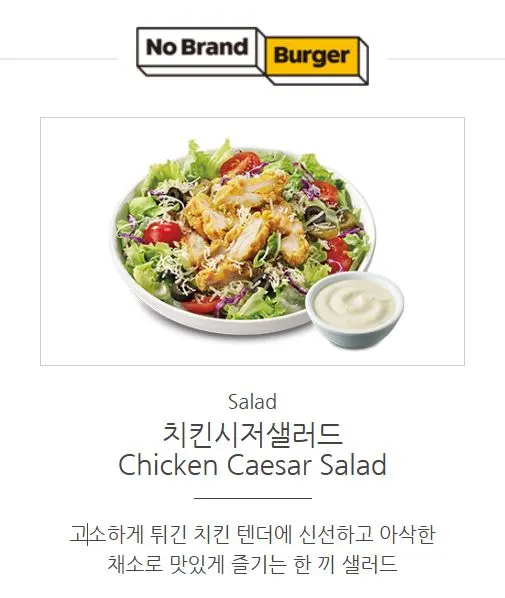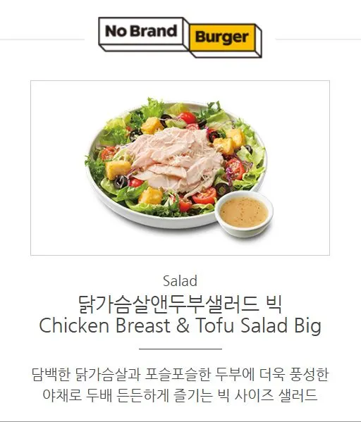 근처에 노브랜드버거가 있다면, 샐러드를 포장하여서 집밥 사이드 반찬으로 먹는 것도 나쁘지 않습니다.