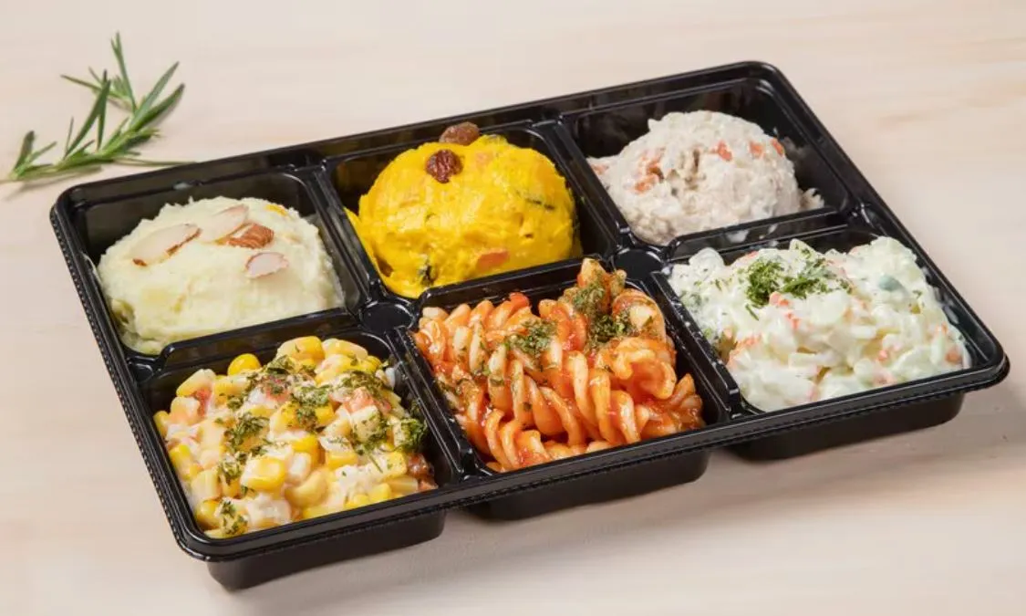 고구마샐러드, 단호박샐러드, 참치샐러드, 맛살샐러드, 콘샐러드, 푸실리파스타샐러드(케첩맛) 6종으로 구성되어 있습니다.