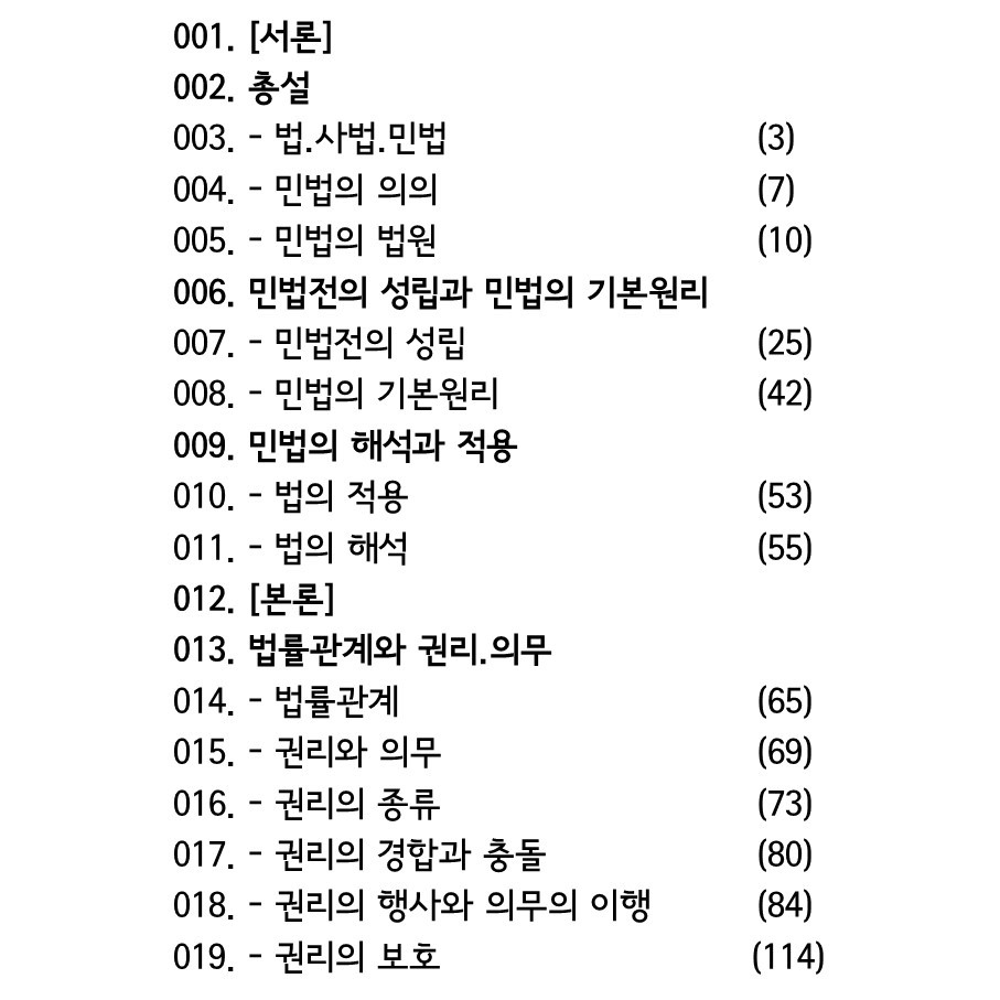'민법총칙'이라도 알게 되면 '자격증' 취득을 위해서 또는 '일상생활'을 위해서 유용할 것 같다는 생각이 듭니다. 그래서 민법총칙 교과서나 수험서를 찾아 보게 됩니다. 열심히 공부하겠다는 마음으로 첫 페이지를 펼칩니다. 목차가 나옵니다. 다음과 같은 낯선 용어들이 기다리고 있습니다. 역시 법은 어렵다는 생각이 듭니다.