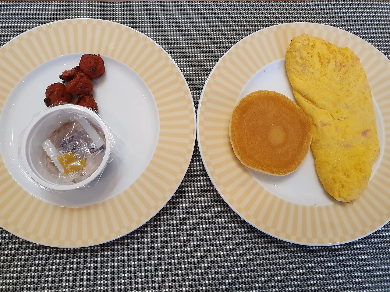 여느 때처럼 나또와 우메보시 그리고 팬케이크를 접시에 담았다.