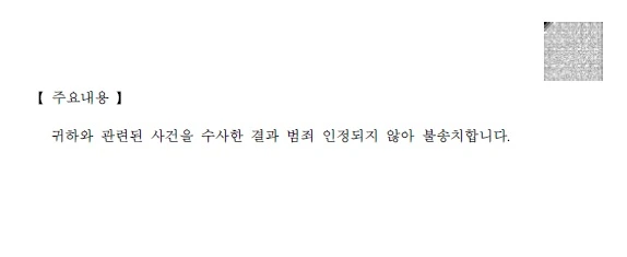 그리고 마침내 기적과도 같은 아래의 결과물을 얻게 되었다(피의자 신문도 없이 범죄안됨 각하 불송치 결정을 받은 것이다).