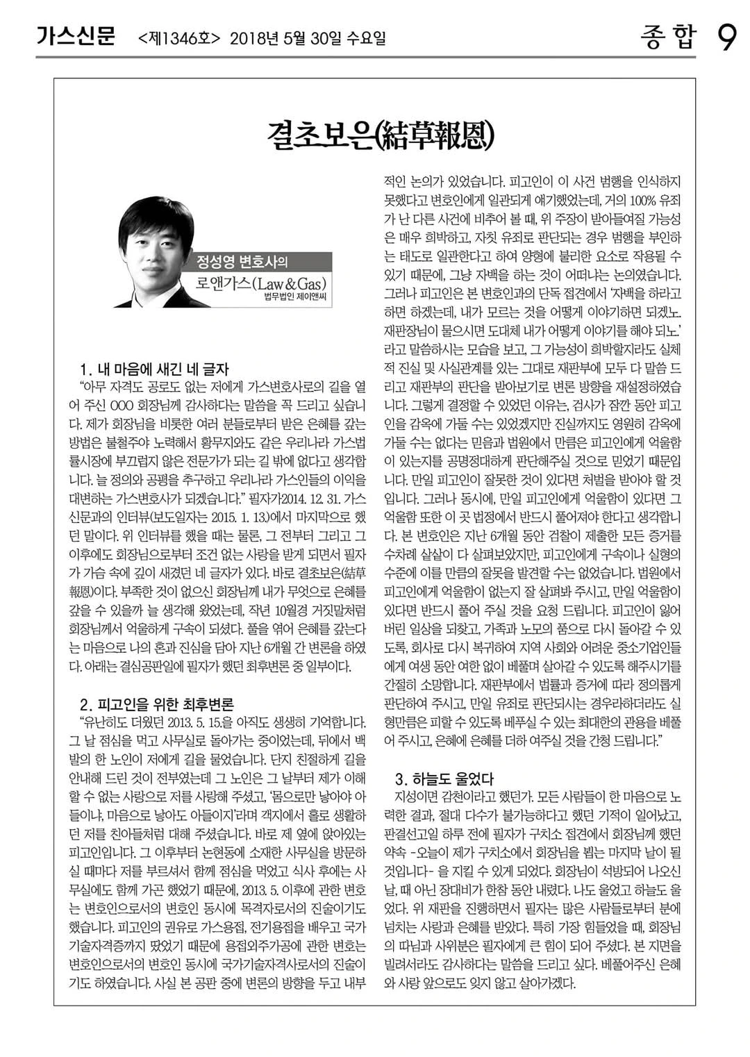 위 사건은 내가 그간 누군가를 변호해오면서 가장 많이 울었던 사건이다(원래는 잘 울지 않는다). 구치소에서 회장님 접견을 마치고 돌아올 때마다 돌아오는 차 안에서 혼자 운전을 하며 얼마나 많이 울었는지 모른다.