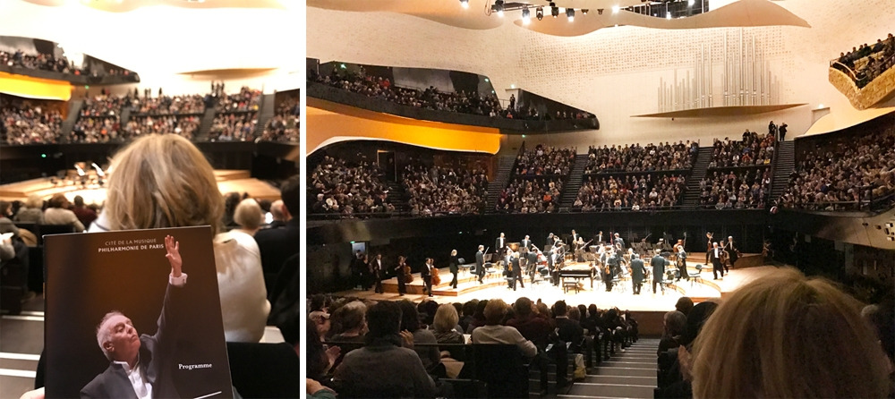 필하모니 드 파리는 처음부터 가능한 한 많은 사람에게 음악의 문을 열어주는 것이 목표였기 때문에 무대와 접근성을 높이기 위한 설계를 했다고 한다. 그래서 가장 멀리 있는 좌석도 지휘자와의 거리가 32미터 정도 밖에 되지 않는다. 2400석이면 서울 예술의전당 오페라 하우스 정도 규모의 대극장인데 겨우 그 정도 거리에 객석이 모두 밀집해 있다니! 좌석이 조금 좁은 듯하긴 했지만, 공간이 그렇게 좁거나 답답하게 느껴지진 않았는데 말이다.