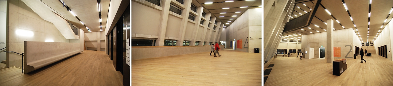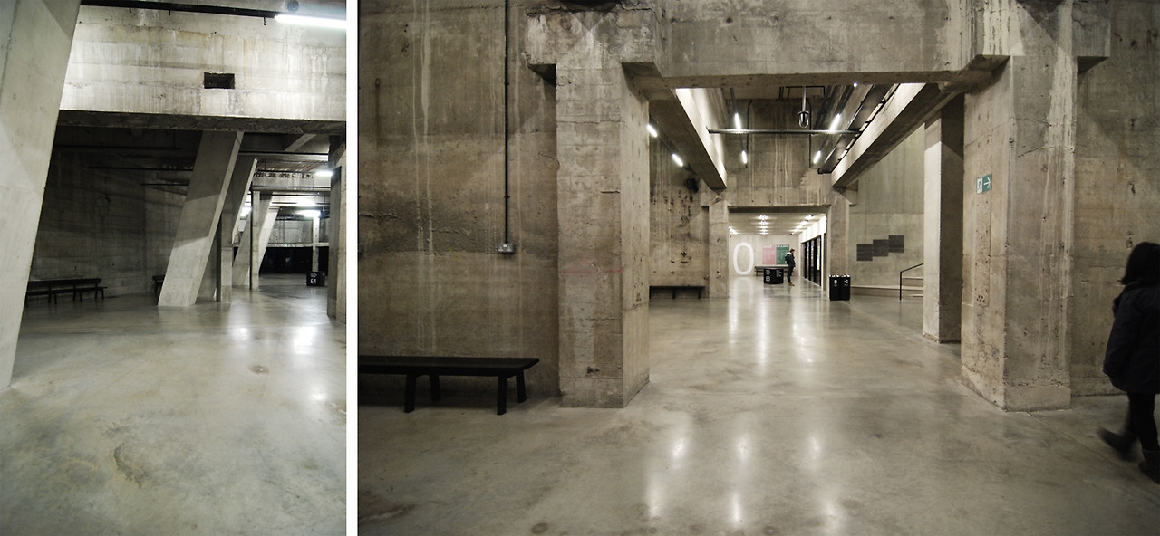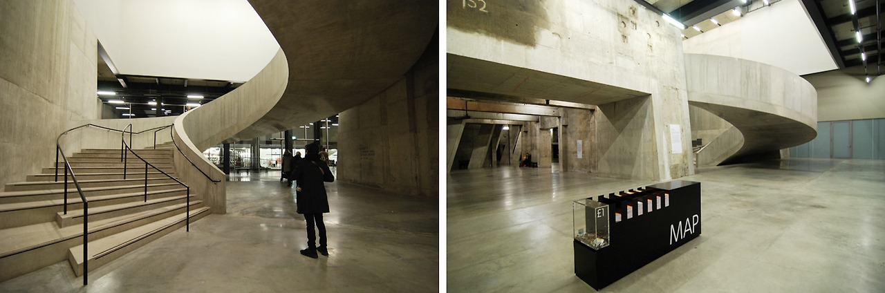 그보다는 이렇게 쭉 이어진 지하의 기둥들을 보고 있으니, 테이트 브리튼의 지하 아치들과 이미지가 묘하게 겹쳐졌다. 지하, 연속된 기둥, 한 가지 색, 텅 빈 공간, 비슷한 요소들이 이렇게 전혀 다른 느낌의 두 공간으로 태어났다. 두 개의 테이트는 각각의 건축물이 가진 서로 다른 역사만큼이나 서로 다른 개성을 가진 건축가를 만나 각자에게 어울리는 얼굴과 표정을 가지게 되었다. 또한 각자의 모습 그대로 런던의 전통과 현대, 두 가지 표정을 보여주는 것 같다.