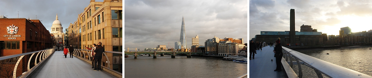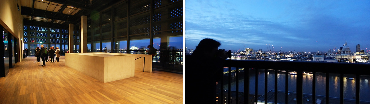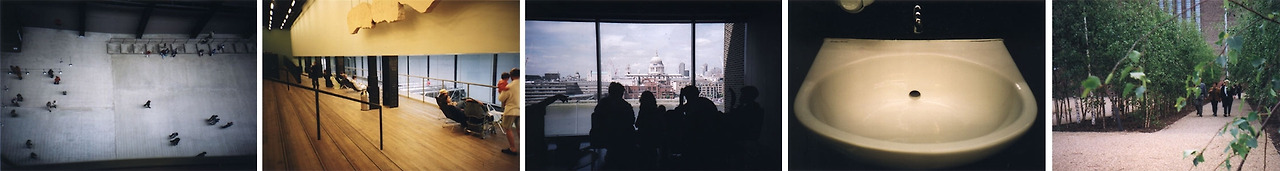 개인적으로는 20대 때의 유럽여행에서 건축 그 자체로 가장 강렬한 인상을 남긴 곳이 바로 테이트 모던이었다. 돌이켜보면 개관한지 그리 오래되지 않은 따끈따끈한 건축물이었던 셈이다. 밀레니엄 브리지도 밀레니엄 카운트다운 때 TV에 보이던 것과는 달리 근사했고, 고전적인 세인트 폴 성당과 산업혁명과 근대의 상징과도 같은 굴뚝이 마주 보고 서 있는 이미지는 그 자체로 런던이 어떤 도시인지를 말해 주는 것 같았다. 게다가 '화력발전소를 리모델링했대.' 라는 것 외엔 아무것도 몰랐던 나에게 당시 테이트 모던의 그 모든 면과 색과 공간은 충격으로 다가왔다.