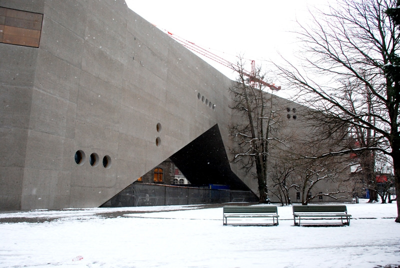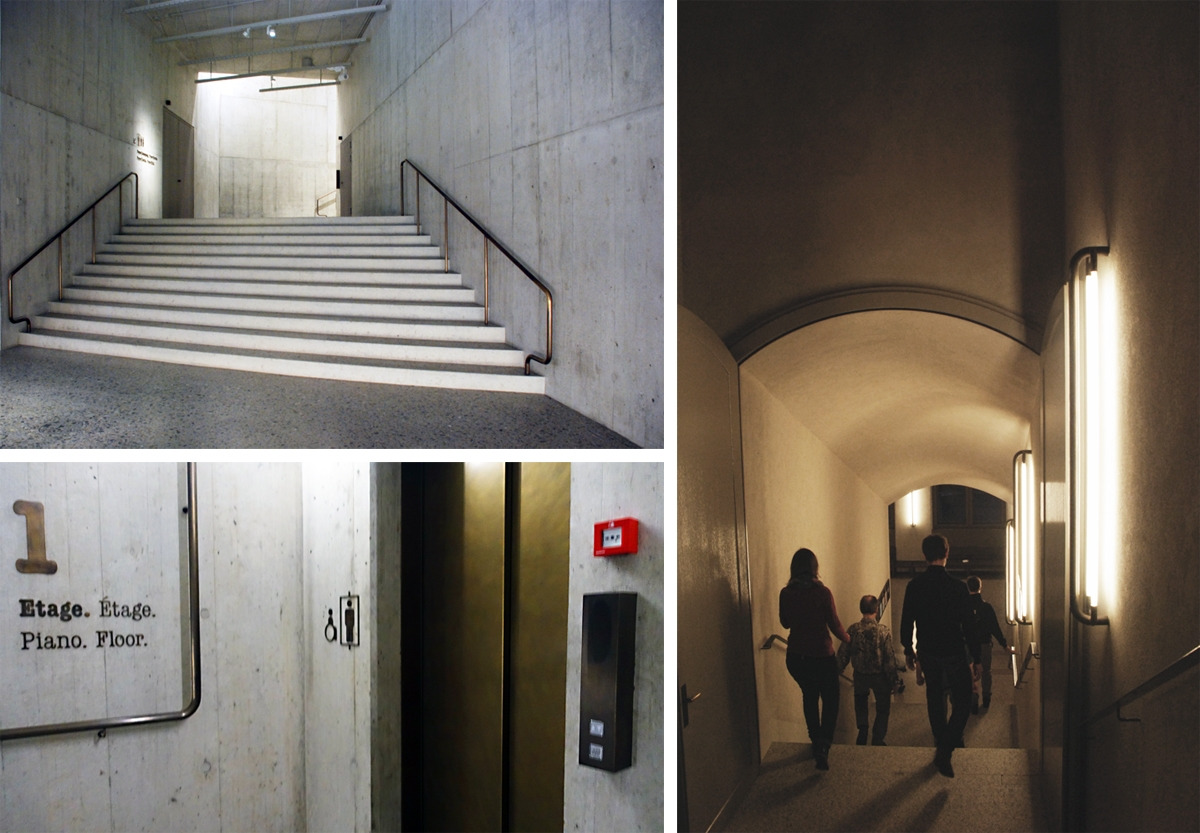 눈을 감고 떠올려 보면 건물의 이미지와 더 선명하게 겹쳐진다. 그래서 이렇게 커다란 건물에 대담하게 기울어진 직선을 그리고 커다란 면을 비워둘 수 있었을까. 작고 동그란 몇 개의 창만으로도 안과 밖을 연결하는데 충분했던 걸까. 스위스 건축가만이 할 수 있는 것은 아닐 테지만, 스위스 사람들에게 아주 익숙한 요소와 색감이라는 것은 인정해야겠다.