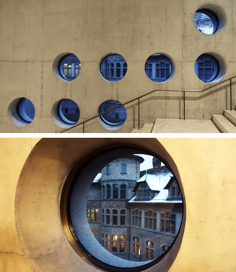 동그란 창은 걸음을 옮길 때마다 고즈넉한 옛 건물의 모습을 달리 보여준다. 우리가 방금 지나온 로비가 있는 곳이다. 불과 몇 미터 떨어진 건물을 작은 창으로 마주 보고 있어 걸음마다 프레임이 달라지는 것이다. 옛 건물과 새 건물이 서로에게 풍경이 되어주고 있었다.