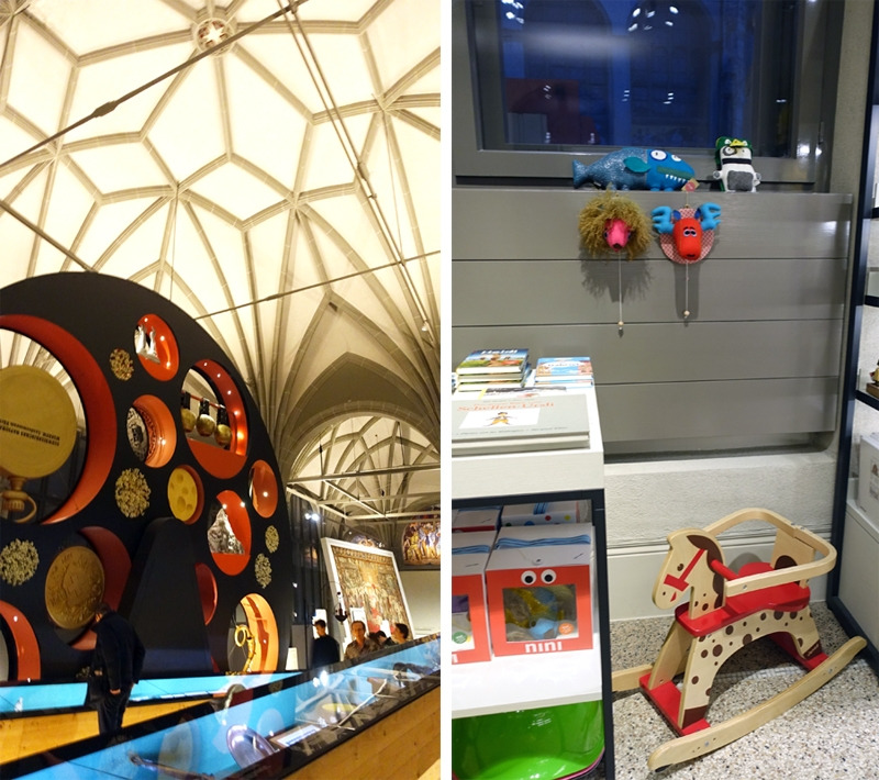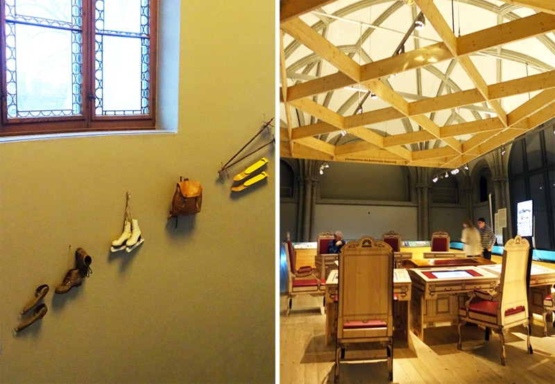 스위스 국립박물관은 선사시대부터 시작되는 스위스의 역사를 모두 담고 있는데도 다른 나라들처럼 웅장한 역사를 과시하거나 자랑하는 것이 아니라 과장이 없었다. 오히려 조금 소박하게 자신들이 살아온 모습을 가지런히 정리해 두었다. 그래서 이런 단순한 선과 면, 옛 건물에서 가져온 색감이 더 잘 어울리는 것 같다.