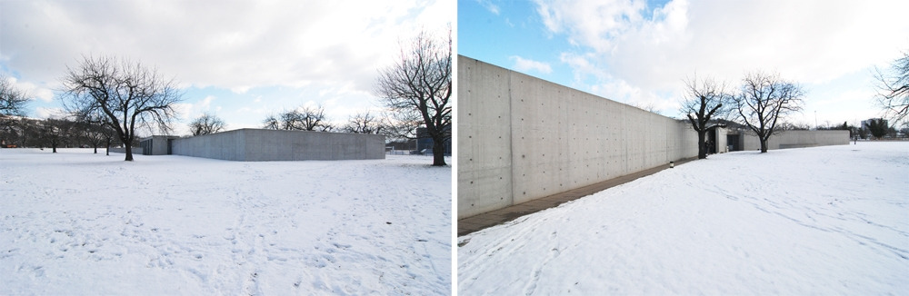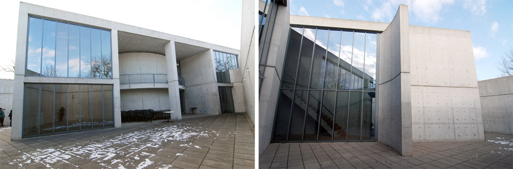가이드가 개인적으로 제일 좋아하는 것은 일본 건축가 안도 다다오(Ando Tadao)의 건물이라고 한다. 이 건물은 개성 넘치는 건축의 각축장에서 일부러 숨어있는 것처럼 보이기도 한다. 콘퍼런스 파빌리온은 겉에서 보면 낮게 깔린 벽과 담장만 보이는데, 마침 눈이 와있어서 마치 눈 속에 파묻힌 것처럼 보였다. 가이드의 설명으로는 이 건물 앞에 있던 벚나무를 해치지 않기 위해서 이렇게 설계한 것이라고 한다.