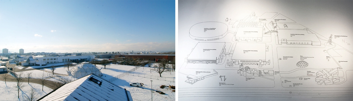 비트라하우스에서 내려다본 전경. 앞쪽 일부 공장만 보인다. 넓은 공장 부지에 공장과 갤러리, 쇼룸, 사무실이 들어서 있다.