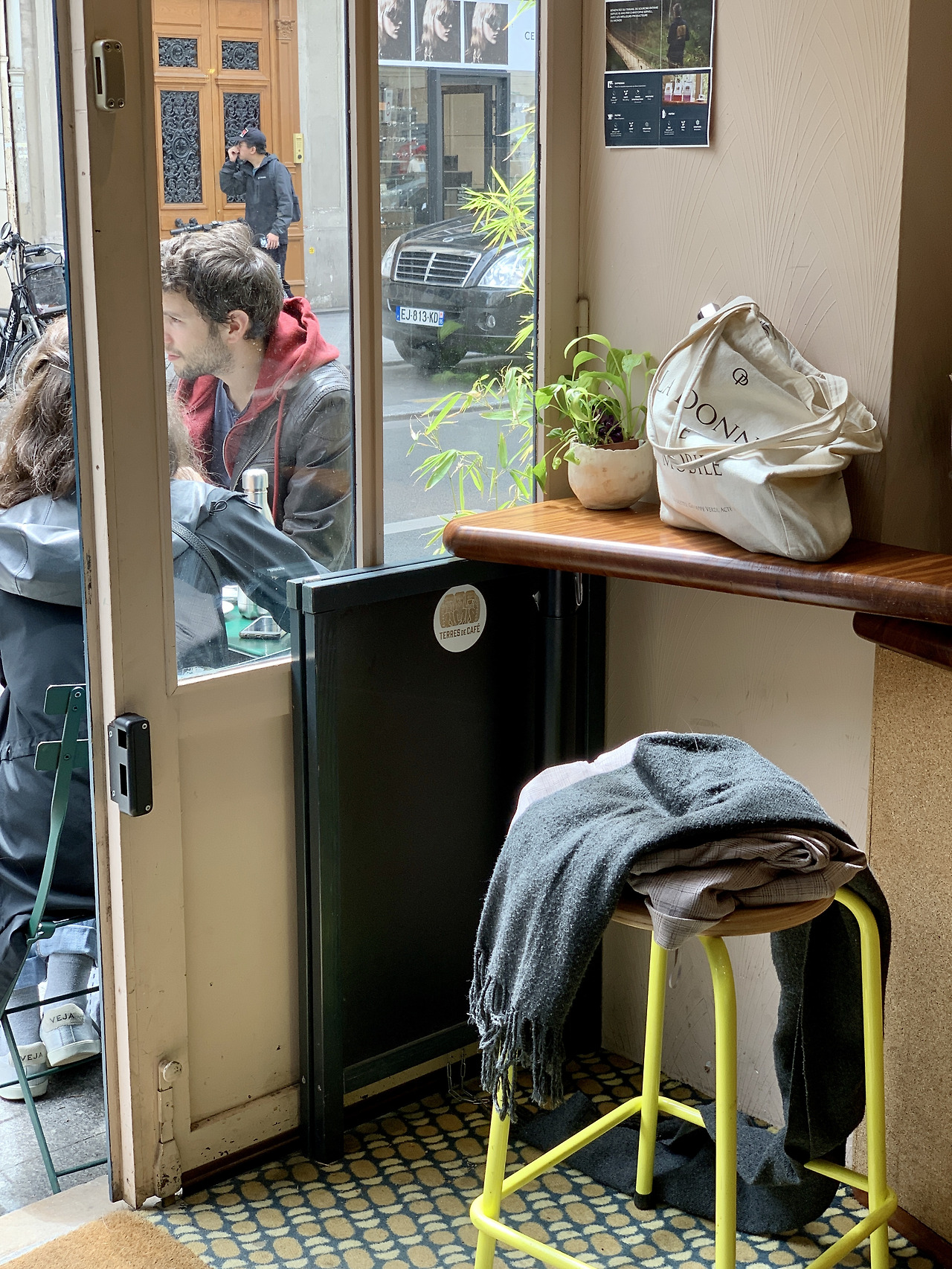 본점도 그리 넓은 편은 아니건만 분점들은 더 작다. 많아도 총 스무 명의 사람이 들어가면 꽉 차기에, 스타벅스 매장 같은 넉넉한 공간을 생각하고 간다면 오산이다. 파리의 카페들은 왜 죄다 이렇게 좁은지. 앉을 곳이 많지 않아 착석 회전율이 원활하게 이루어져야 할듯한데, 앉아있는 손님들은 도통 일어날 생각을 하지 않고 여유롭게 커피를 즐긴다.