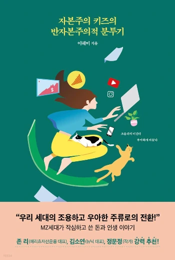 그녀는 책에 '돈'과 '인생' 이야기를 일반화하지 않은 담백한 시선으로 풀어놓았다. 자본주의 키즈라고 칭하는 세대들의 고민거리, 생활 방식, 생존 방식, 소비, 환경, 부캐열풍에 대한 고찰, 신념, 페미니즘 등을 군더더기 없는 4부 목차로 이야기 한다. 무엇보다 '요즘 젊은이' 라고 치부되는 배경과 늘 주류권 밖으로 밀려나있는 현실에 대한 부분이 인상 깊다. 수 없이 쏟아져 나오는 많은 컨텐츠들 속에서 지워지는 나의 정체성과 창의성은 부캐에 대한 열망도, 기성세대에게 치이면서 동시에 강요받는 미덕에 대한 단상도 모두 너무나 익숙하게 느껴지는 건, 비단 나 뿐만 아닐 것이다.