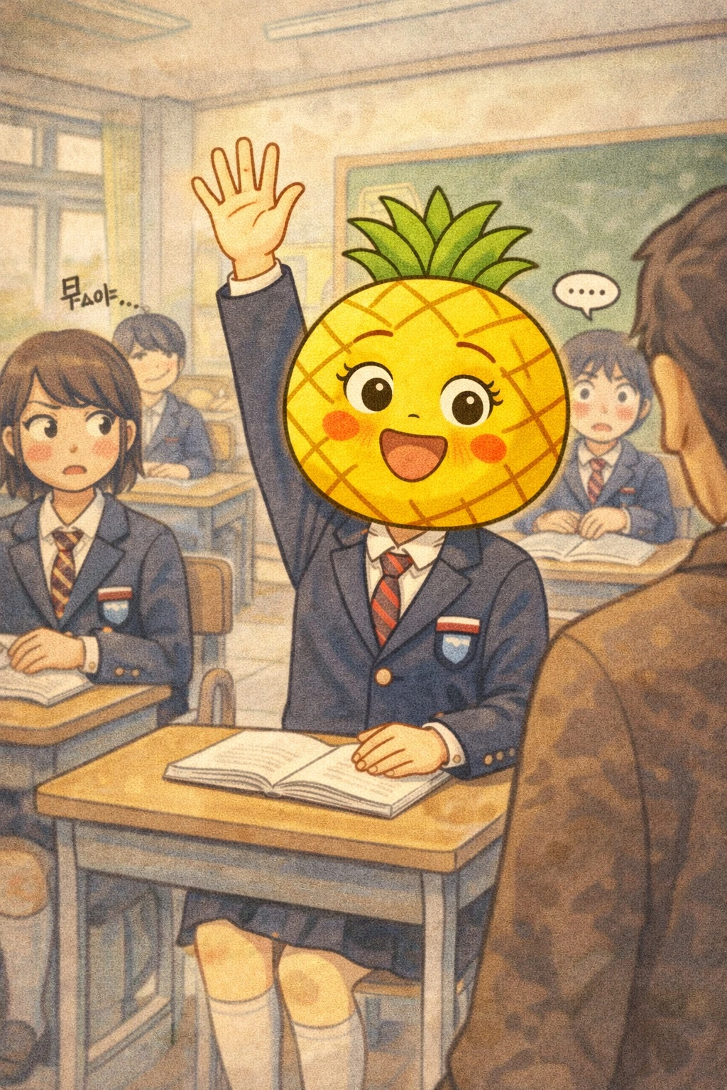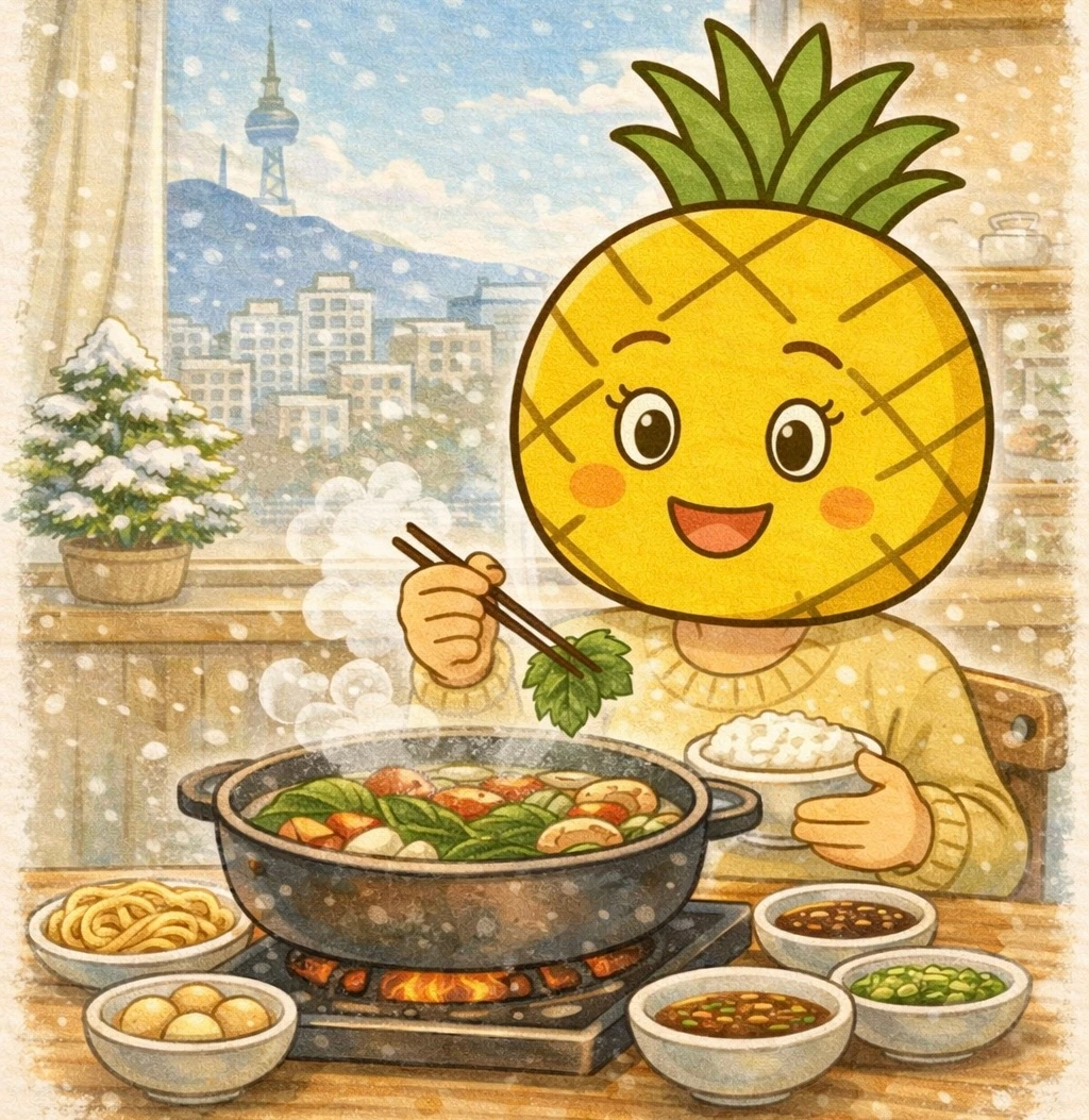 ”파인애플 엄청 잘 먹네. 그렇게 맛있어??“