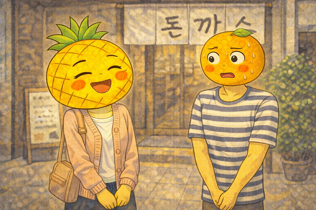 “어머나 파인애플! 이리 와봐, 내가 좀 고쳐줄게..”