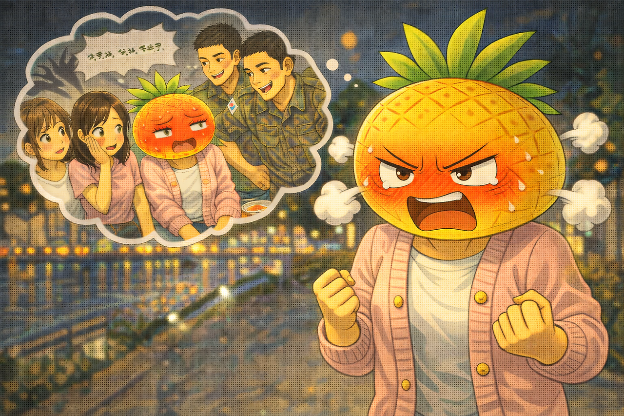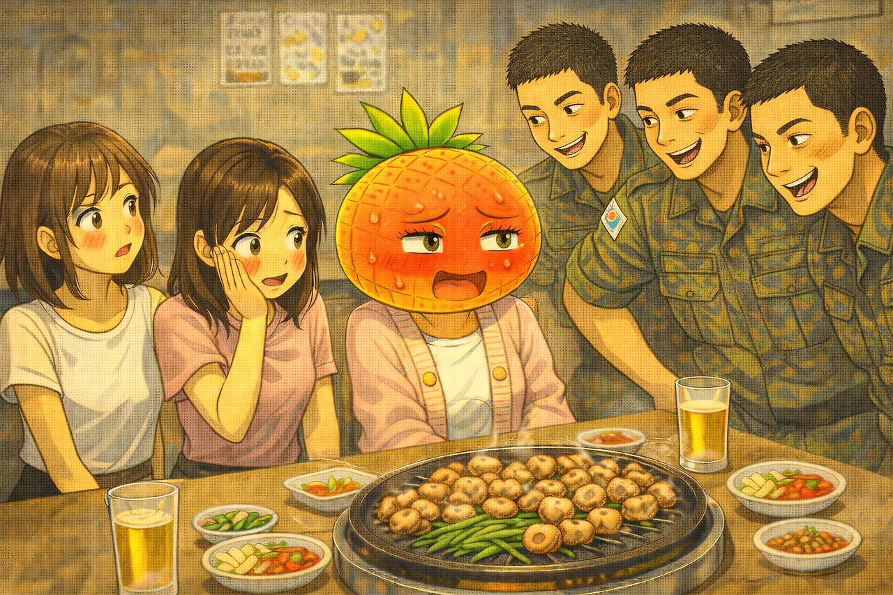 얼굴이 확 달아올랐다. 그 자리에 있는 모두가 분명 파인애플이 아니라 홍당무가 된 나를 보았으리라.