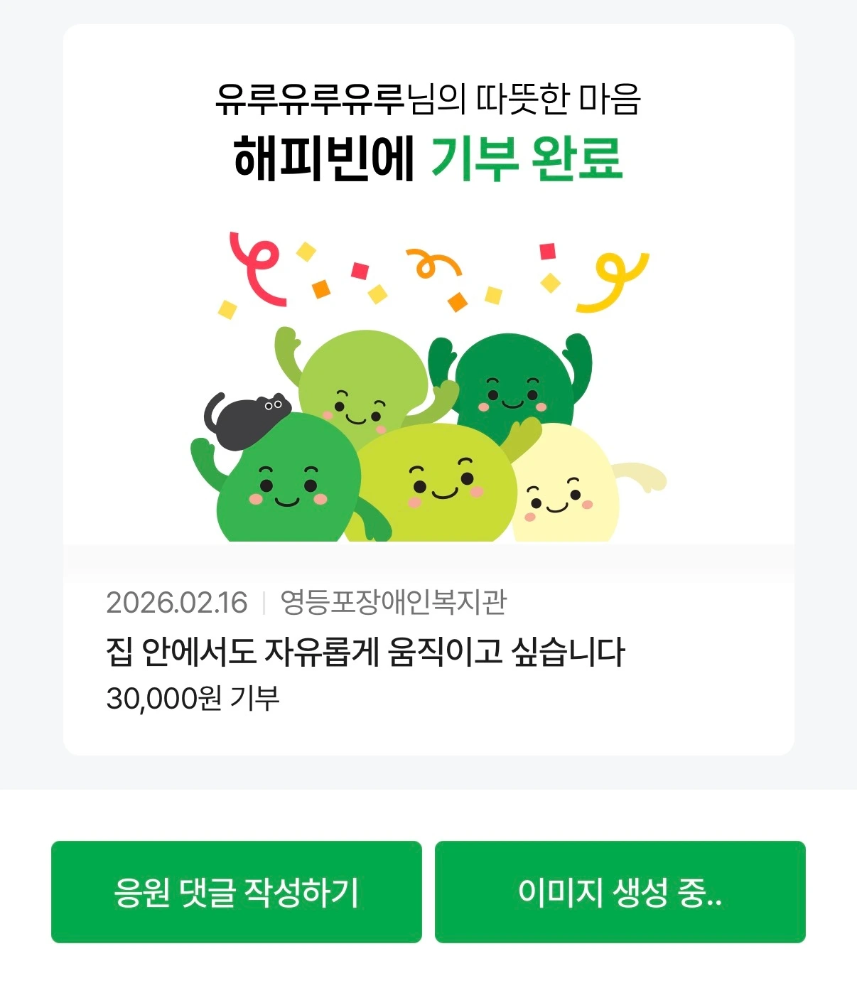 뇌병변 여성 장애우분께 자립을 위해 기원하는 마음으로 기부하였습니다.