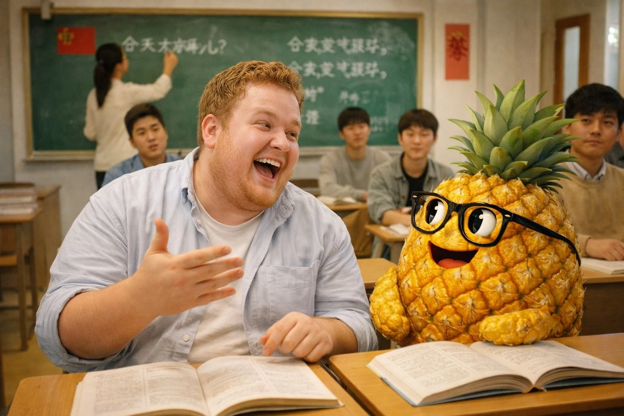 “오우, 파인애플! 여기서 무슨 일이야?”