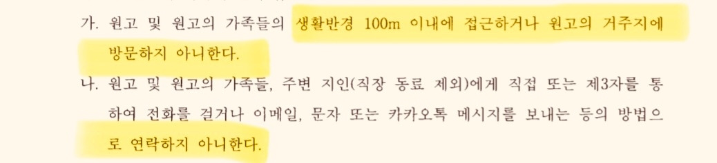 1. 나와 내 가족 생활반경 안에 접근하지 말 것.