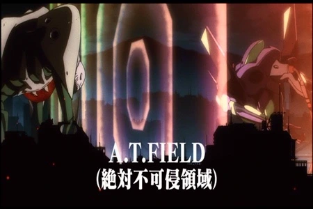 잊을 만하면 찾아오는 사도가 출현할 때마다, 거대한 로봇 에반게리온은 빛의 방어막을 펼친다.