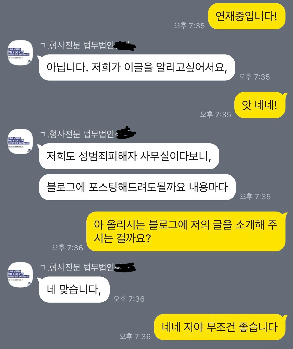 법무법인은 성범죄 피해자를 전문으로 하는 곳이었고