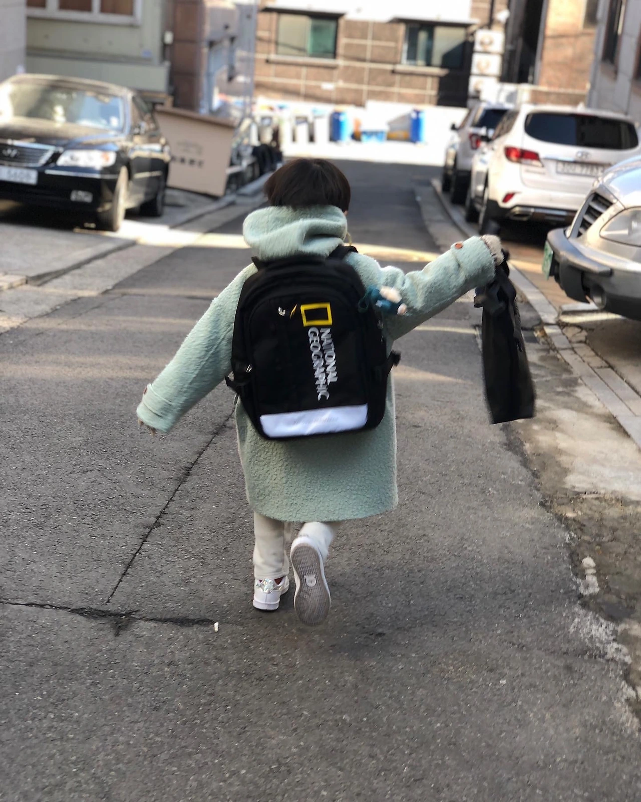 어릴 적 내 엄마도 그래 왔고, 엄마들이 자녀들의 가방을 들어주는 모습을 보며 '굳이 무겁지도 않은데 왜?'라는 생각을 해왔더랬다. 자식을 낳아보니, 금이야 옥이야 키워보니, 아이의 등에 벌써부터 무거운 짐을 메어주고 싶지가 않은 마음이 피어났다. 가방에 별것 들어있지 않아도 아이가 자기 몸만한 가방을 들고 콩콩이 걸어가는 모습이 왜그리도 몽글하니 세상 마음에 짠한지, 그렇게 나는 내 아이가 하루라도 늦게 세상의 짐을 알고 지게 되길 바라며 오늘도 등교하고 하교하는 아이의 가방을 내 등에 메고 가는 평범한 엄마가 되어간다.