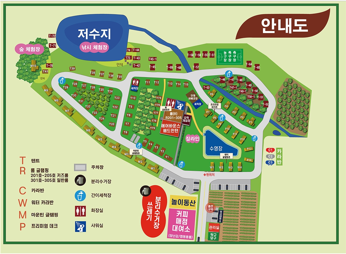 "우리 집에서 30분 거리에 유명한 캠핑장이 있어서 알아봤는데 일요일은 예약이 가능해!"