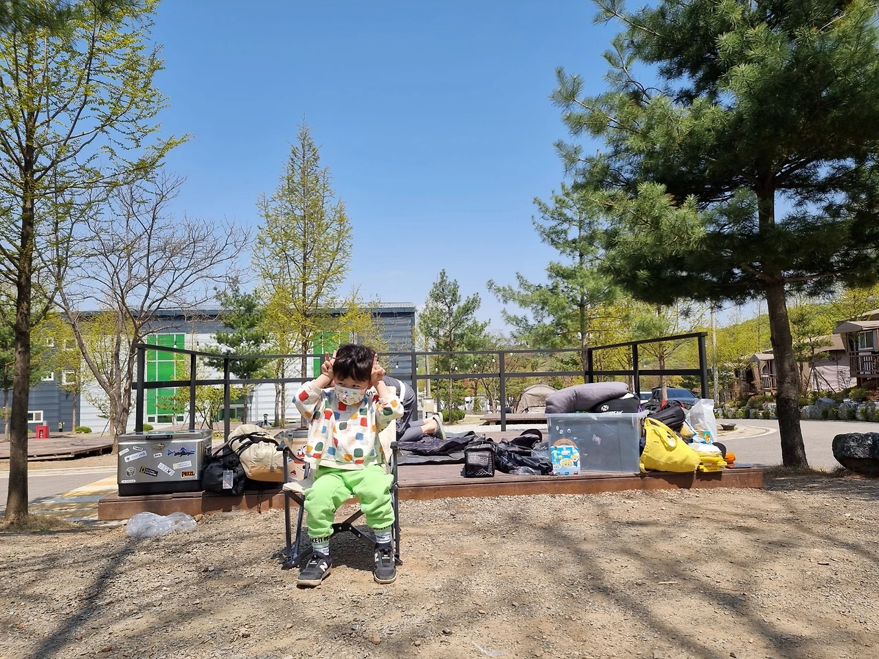 한바탕 놀고 난 후 간식으로 짜파게티도 한 그릇 뚝딱 먹고 준이랑 다시 에어바운스에서 놀고 잔디밭에서 뛰어놀았다. 여기서 자고 내일 집에 가냐고 묻는 준이에게 이번 캠핑은 저녁에 집으로 돌아가서 잘 거라고 설명해 줬더니 아이의 표정이 금방이라도 비가 내릴 것 같은 먹구름처럼 울상이 되었다.