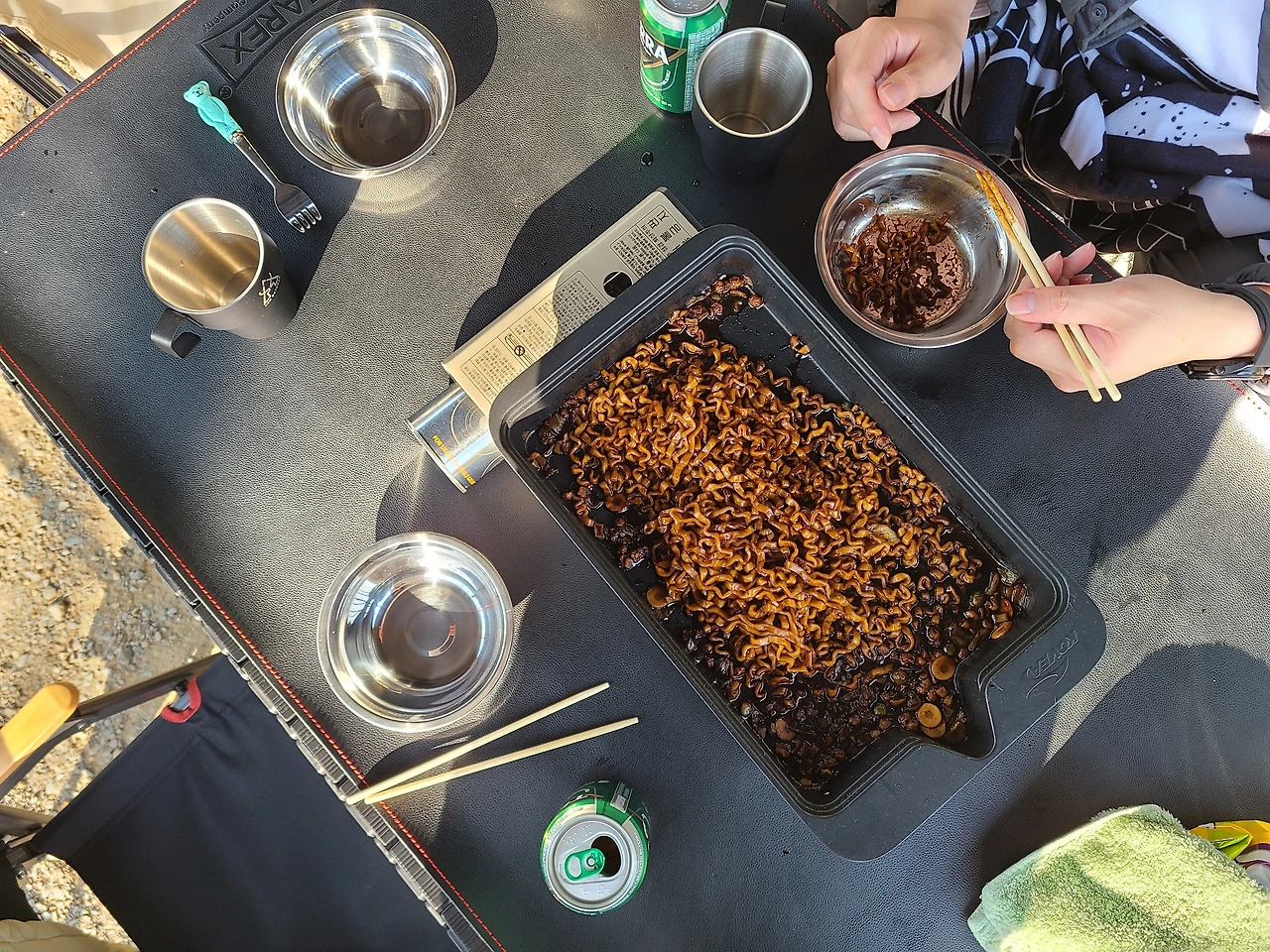 반나절 캠핑이지만 음식은 1박 2일 분량으로 준비했다. 다 먹고 집으로 돌아가겠다는 생각으로 쿨러에 있는 음식을 다 꺼냈다.