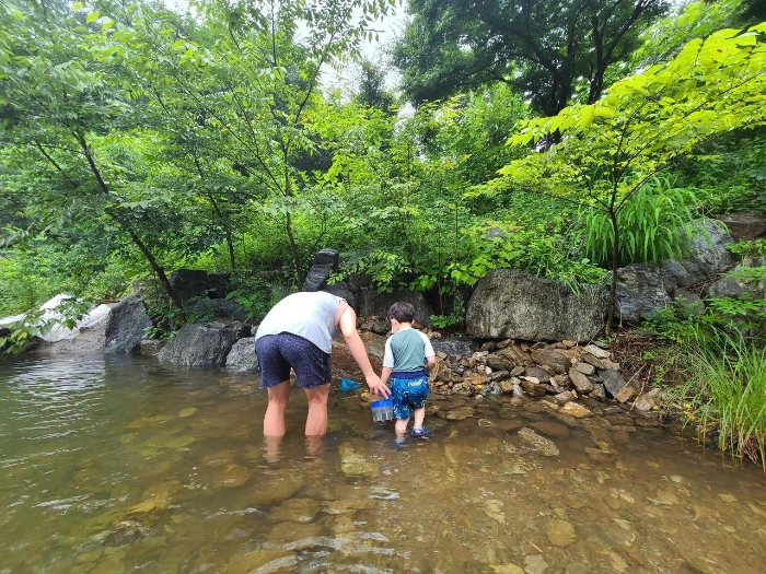 본래의 모습을 찾은 계곡은 정말 맑고 깨끗했다. 수심도 깊지 않아 준이와 함께 놀기 좋았다.