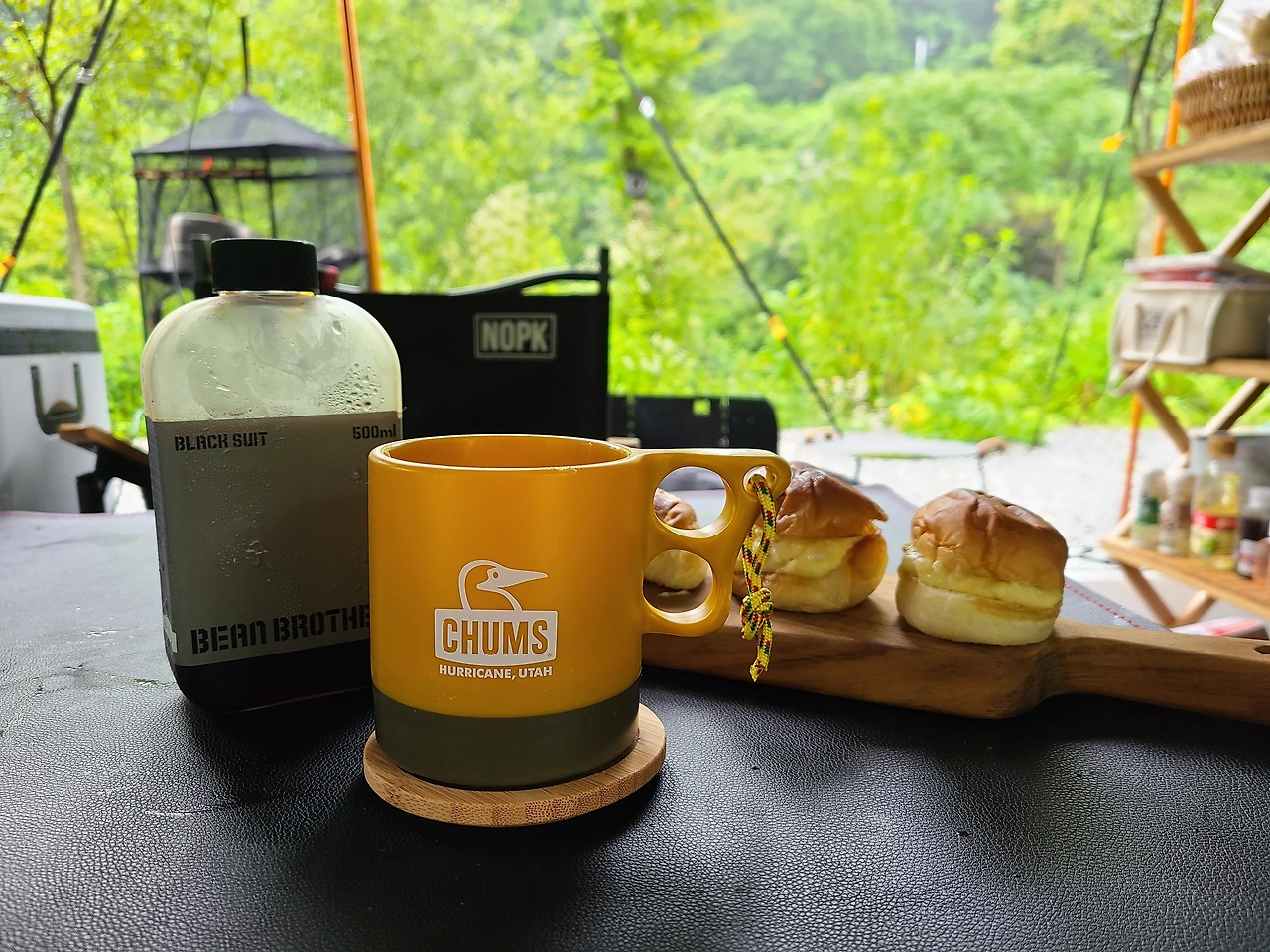일찍 준이를 재우고 나와 남편은 우중 캠핑을 느긋하게 즐기기로 했다.