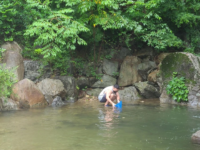 우리 세 식구는 채집통을 들고 물고기 잡기에 열중했다. 아주 작은 물고기가 정말 많았다.