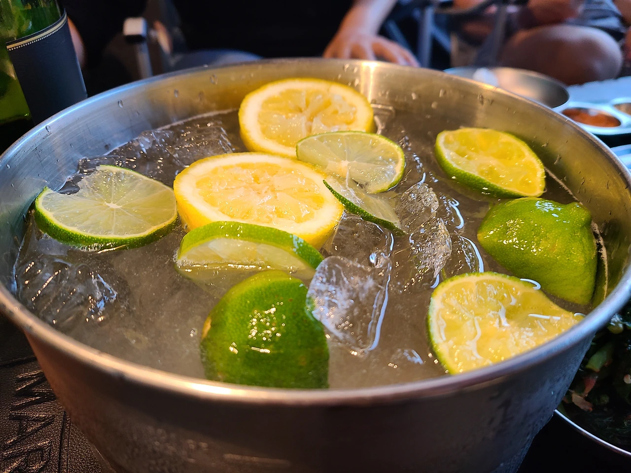 토닉워터까지 부으니 둘이서 먹기엔 많은 양의 소주 하이볼이 만들어졌다. 이것만 먹어도 배가 부를 것 같았다.