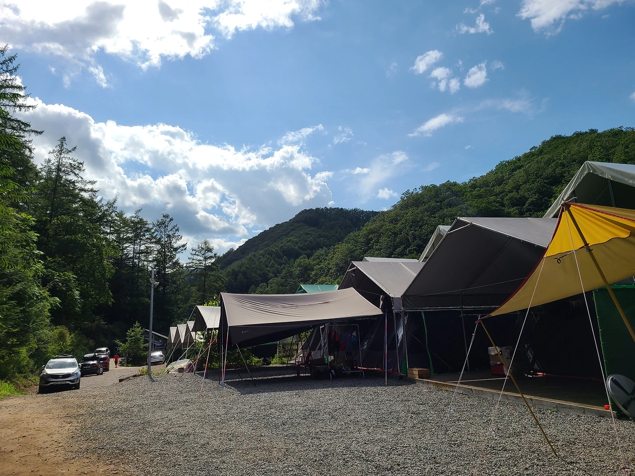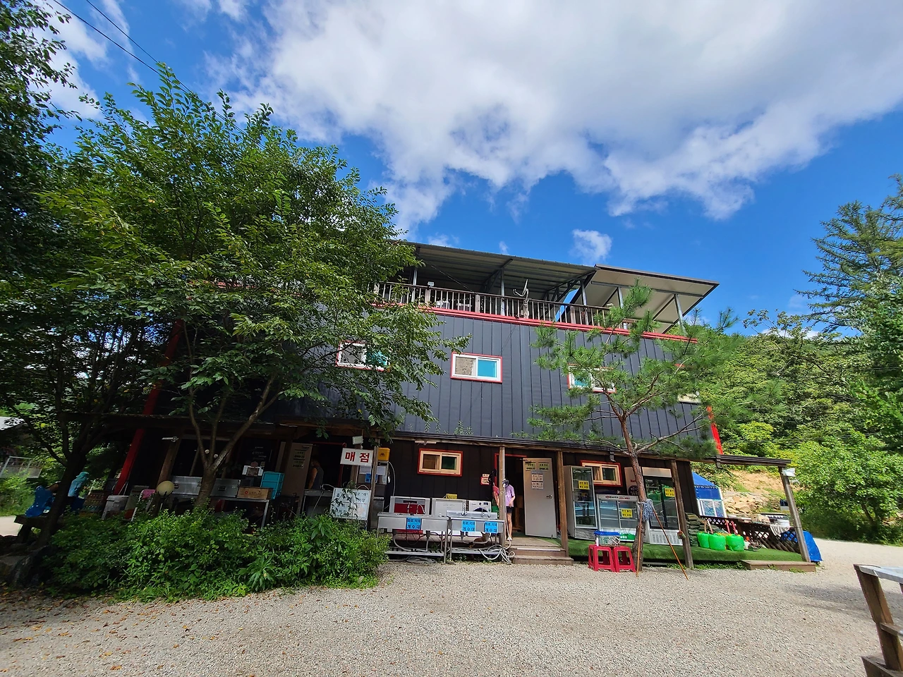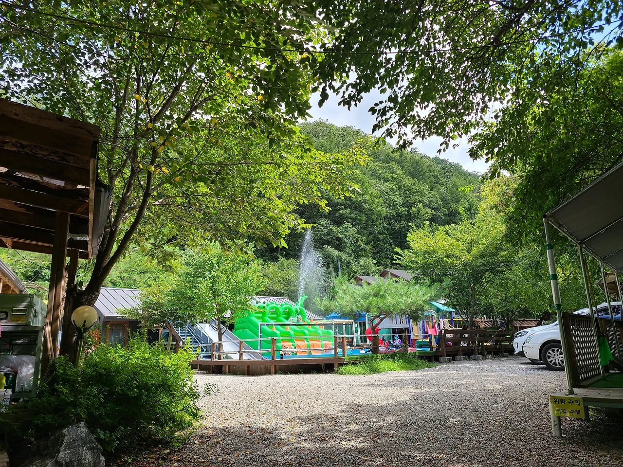 여름엔 수영장과 작은 또랑이 흐르고 무한 얼음 제빙기와 세탁기가 있고 단골 캠퍼들이 많은 곳으로 모든 사이트에 타프가 설치되어 있어 우중 캠핑하기 좋은 곳으로 유명했다.